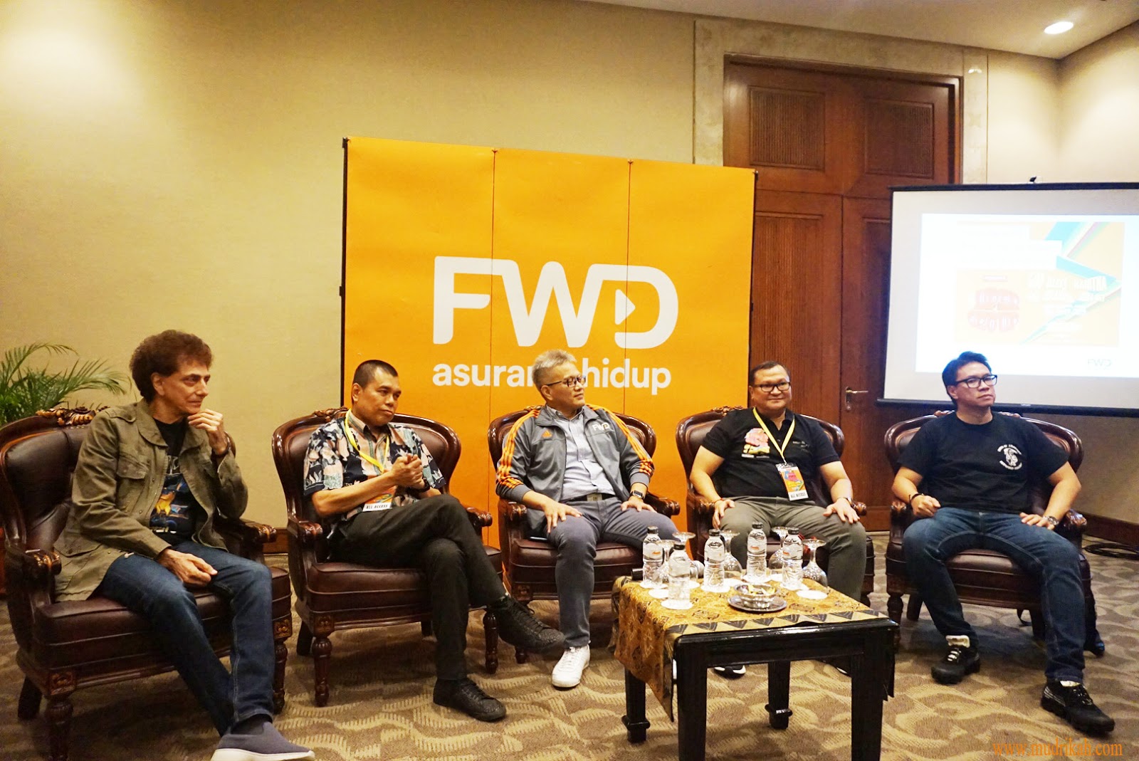 | Kanan : (Ahmad Albar vokalis God Bless, Bpk Kadri M (XI Creative), Bpk Rudi Kamdani (Wadir FWD Life), Bpk Imran (XI Creative), Fajar ( Gitaris God Bless) |