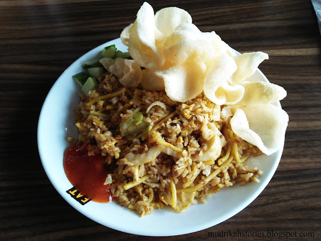 • Nasi Goreng Nasi goreng ini aku coba dari Nasi Goreng Babat Semarang, saat lewat di tempat makan ini wanginya sedap sekali jadi aku tertarik buat nyobain. Porsinya lumayan banyak, tapi untuk rasa aku cuma bisa kasih 2 dari 5 bintang kurang berkesan dilidah pemirsah. Harganya 35rb rupiah saja, lumayan mahal ya untuk ukuran nasi goreng biasa.