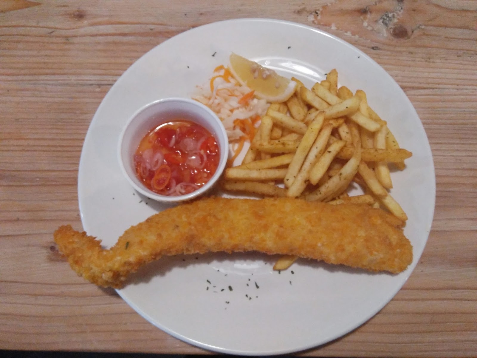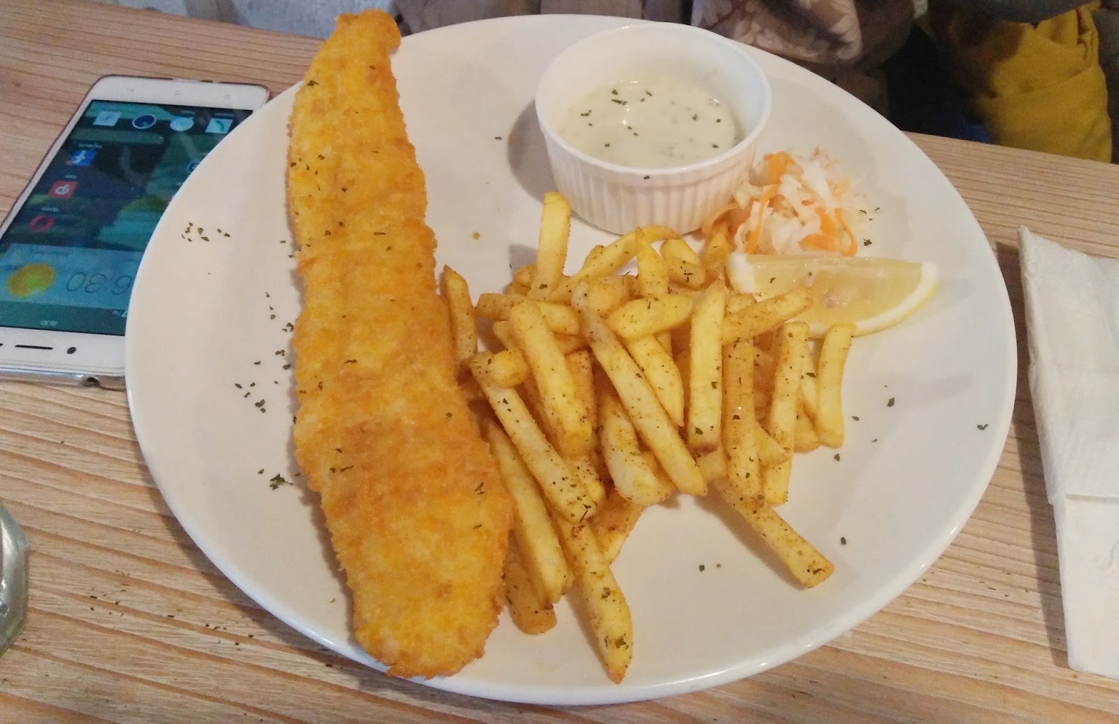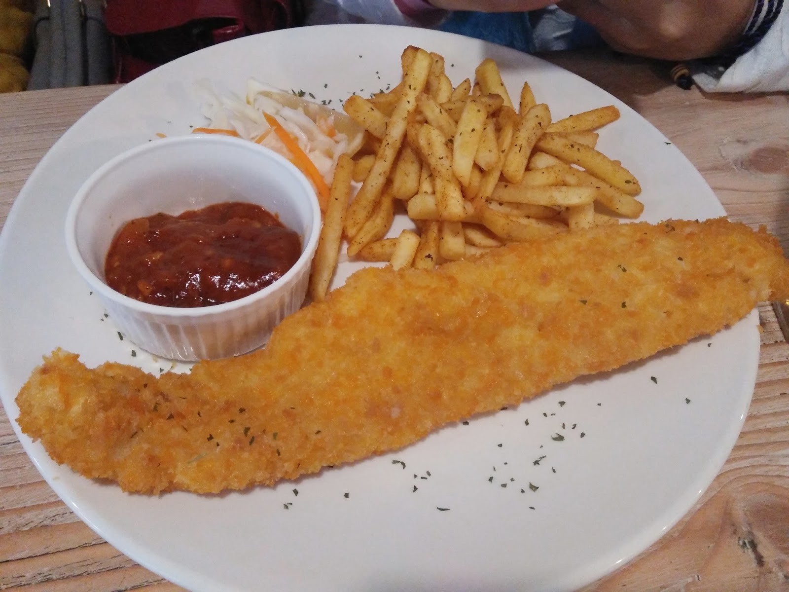 Makanan sudah tersaji di meja jangan lupa foto dulu, biar pada percaya abis dari fish bomber bukan cuma hoax.lol. paket lengkap dalam satu piring penyajian adalah satu ikan dori, sambal, salad, dan bisa pilih nasi atau frech fries. Yang pertama kita cicip adalah sambalnya dulu, dicobain tuh satu-satu. Sambal dabu-dabu punyaku terdiri dari irisan bawang merah, cabe rawit, dan tomat, kemudian digoreng sampai agak layu. Rasanya seger menurutku, rasa pedes dari rawit dicampur dengan rasa segar dari tomat.