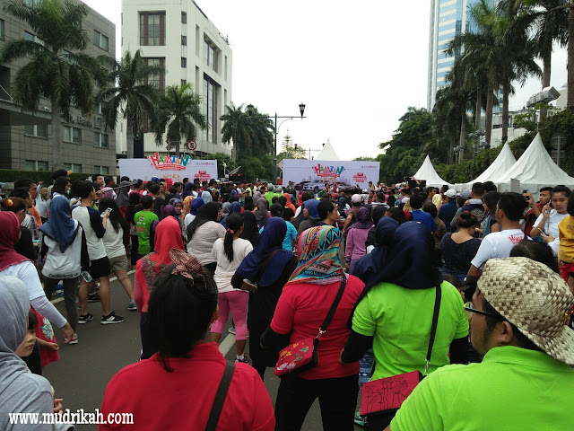 Acara utamanya dipusatkan di Booth Bank DKI di samping hotel mandarin, sambil menunggu rombongan pawai tiba para pengunjung bisa mengikuti acara Zumba Robic dan juga ada lombanya juga, senangkan sambil olahraga bisa dapat hadiah juga.