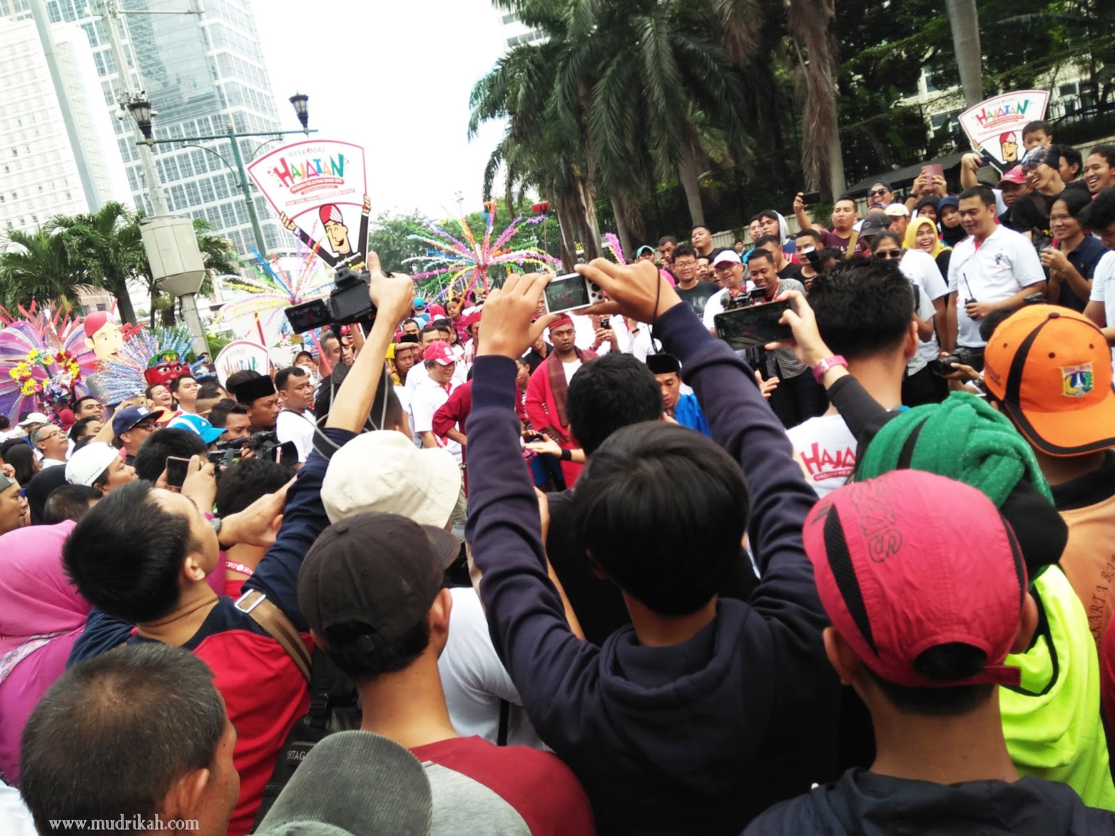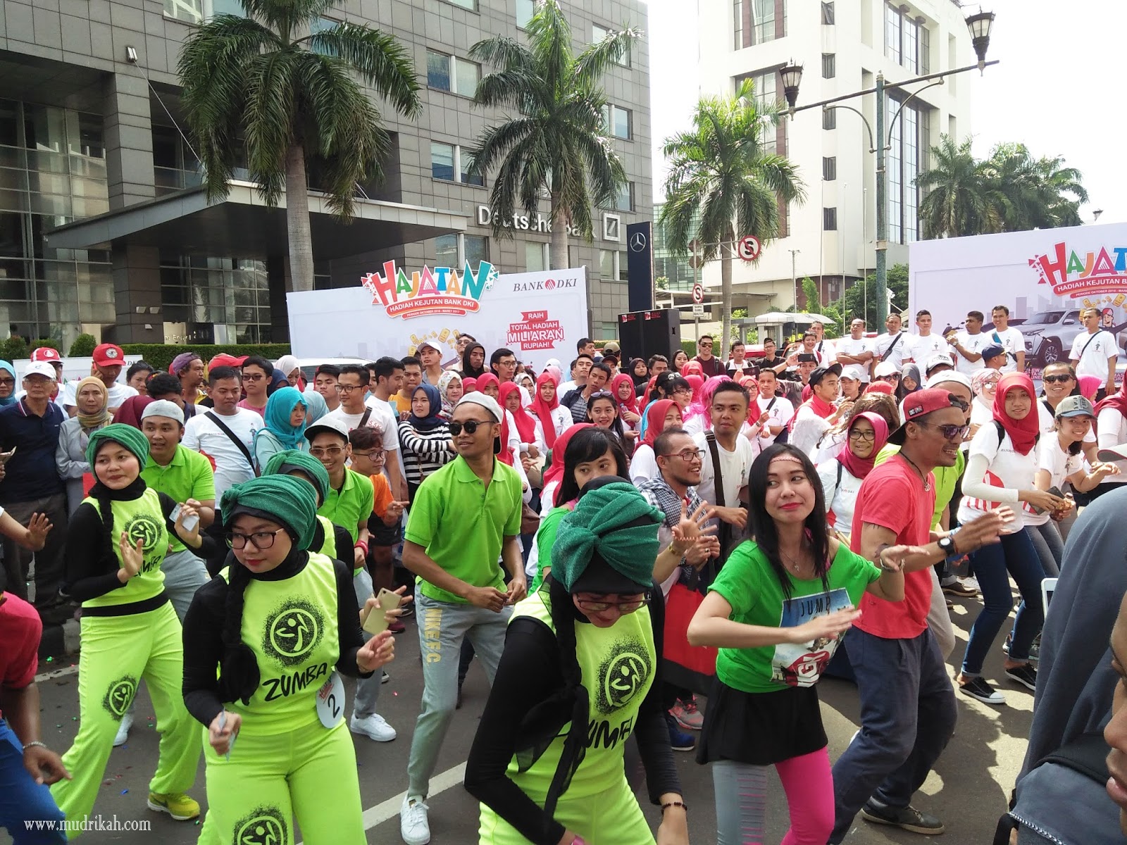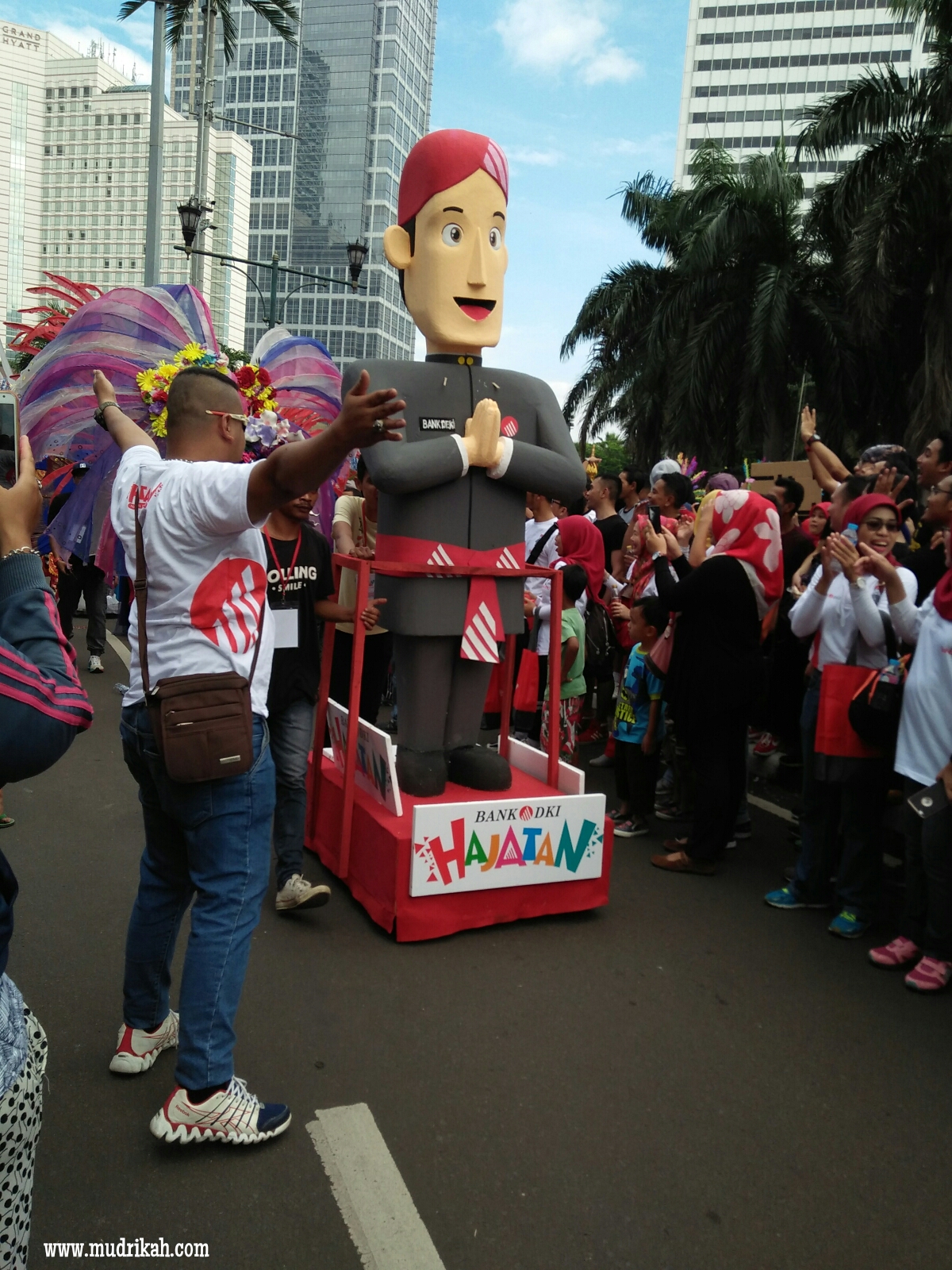 Acara utamanya dipusatkan di Booth Bank DKI di samping hotel mandarin, sambil menunggu rombongan pawai tiba para pengunjung bisa mengikuti acara Zumba Robic dan juga ada lombanya juga, senangkan sambil olahraga bisa dapat hadiah juga.