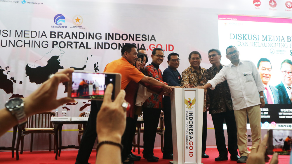 Jakarta, (Senin, 10 Desember 2018), Berlokasi di gedung serbaguna Roeslan Abdul Gani, Menteri Komunikasi dan Informatika Rudiantara meresmikan Re-launching dari Indonesia.go.id bersama para tamu nara sumber lainnya yaitu : Bapak Moeldoko (Staff Kepresidenan), Bapak Renald Khasali (Guru BesarIlmu Manajemen di UI), dan juga Ibu Niken DirJend Informasi dan Komunikasi Publik KemenkoinfoKeminfo.