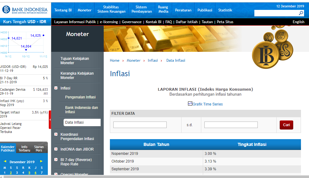 Untuk mengecek tingkat inflasi kita bisa cek di website Bank Indonesia