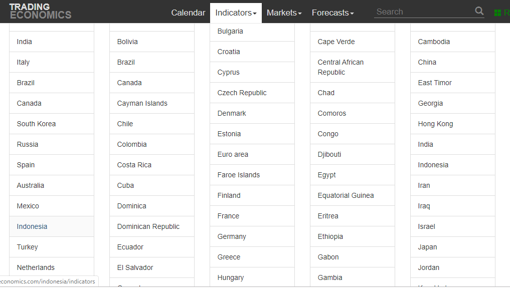 Jadi kita bisa pilih negara yang ingin kita ketahui datanya, seperti contoh : Indonesia, Atau bisa juga cek di menu Indicator.