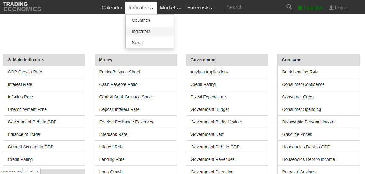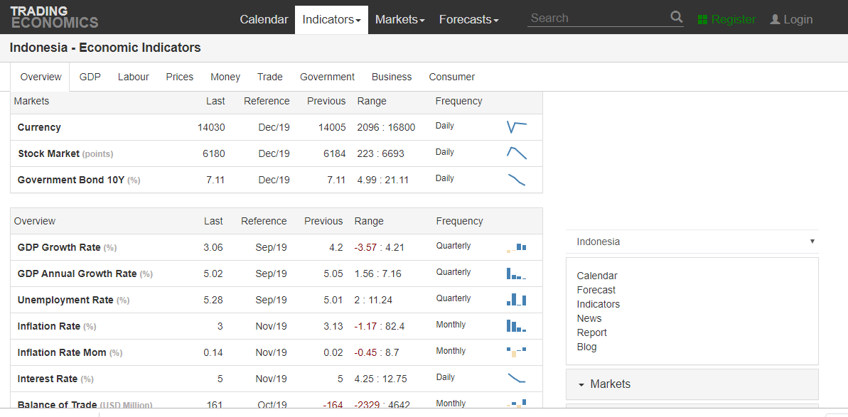GDP adalah total nilai produksi barang dan jasa di dalam suatu negara selama satu tahun. Lalu gimana caranya kita bisa tahu info GDP di suatu negara Mud? Nah Mas Liyanto memberikan informasi yang cukup penting, bahwa untuk meengecrk GDP kita bisa buka website TradingEconomics.com . Untuk tampilannya kurang lebih seperti ini ya