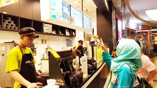 Sudah beres semua, waktunya jajan, Fyi Sour Sally ini adalah produk Frozen Yogurt yang disajikan dengan beberapa toping ada buah-buahan dan juga mochi. Aku memilih outlet Sour Sally yang di Taman Anggrek, voucher sour sally ini berlaku untuk size reguler, large, riche dan lykone. Aku memiilih variant White Skim reguler dengan tiga toping yaitu Kiwi, Mangga dan Buah Naga. Awalnya aku takut kalo pembelian menggunakan voucher dibikin ribet, tapi ternyata enggak sama sekali, mas-masnya melayani kami denga ramah dan sama dengan pembeli lainnya. Masnya hanya meminta melihat voucher elektroniknya di hp sebagai bukti bahwa vouchernya masih aktif