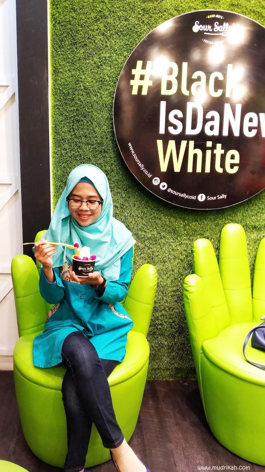 Sudah beres semua, waktunya jajan, Fyi Sour Sally ini adalah produk Frozen Yogurt yang disajikan dengan beberapa toping ada buah-buahan dan juga mochi. Aku memilih outlet Sour Sally yang di Taman Anggrek, voucher sour sally ini berlaku untuk size reguler, large, riche dan lykone. Aku memiilih variant White Skim reguler dengan tiga toping yaitu Kiwi, Mangga dan Buah Naga. Awalnya aku takut kalo pembelian menggunakan voucher dibikin ribet, tapi ternyata enggak sama sekali, mas-masnya melayani kami denga ramah dan sama dengan pembeli lainnya. Masnya hanya meminta melihat voucher elektroniknya di hp sebagai bukti bahwa vouchernya masih aktif