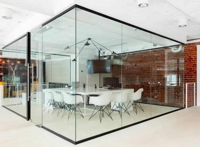 Selain bilik ataupun akordeon, partisi kantor yang terbuat dari bahan kaca ternyata menjadi pilihan bagi banyak perusahaan. Keberadaan partisi ini biasanya digunakan untuk menyekat sebuah ruangan dengan ruangan lainnya agar lebih privat. Adapun ruangan yang biasanya menggunakan partisi ini adalah direktur, manajer maupun divisi tertentu.