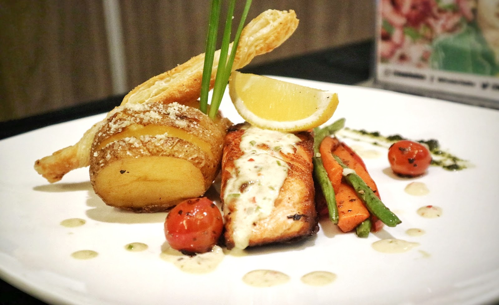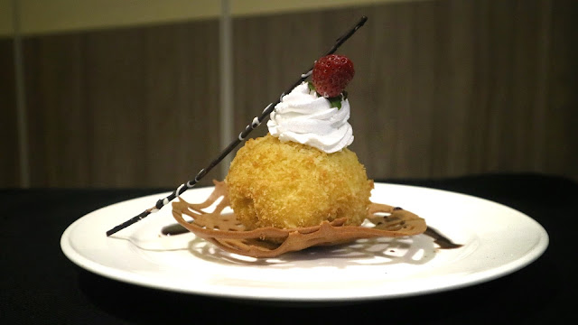 Tomato Cream Soup, Seared Salmon With Cream Soup, Chicken Roasty with baked potato and special Fried Ice Cream.