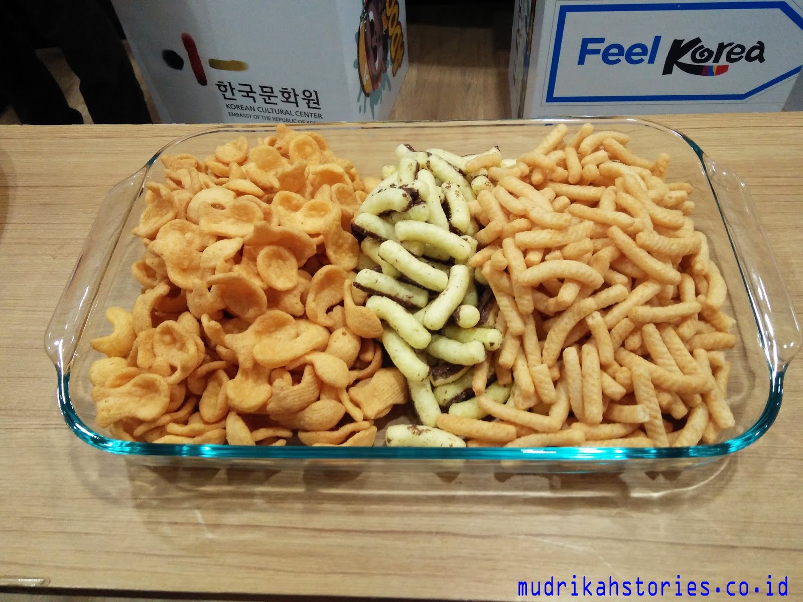 Setelah acara selesai kami diperbolehkan mencicipi camilan khas seollal, ada 3 camilan yang disajikan