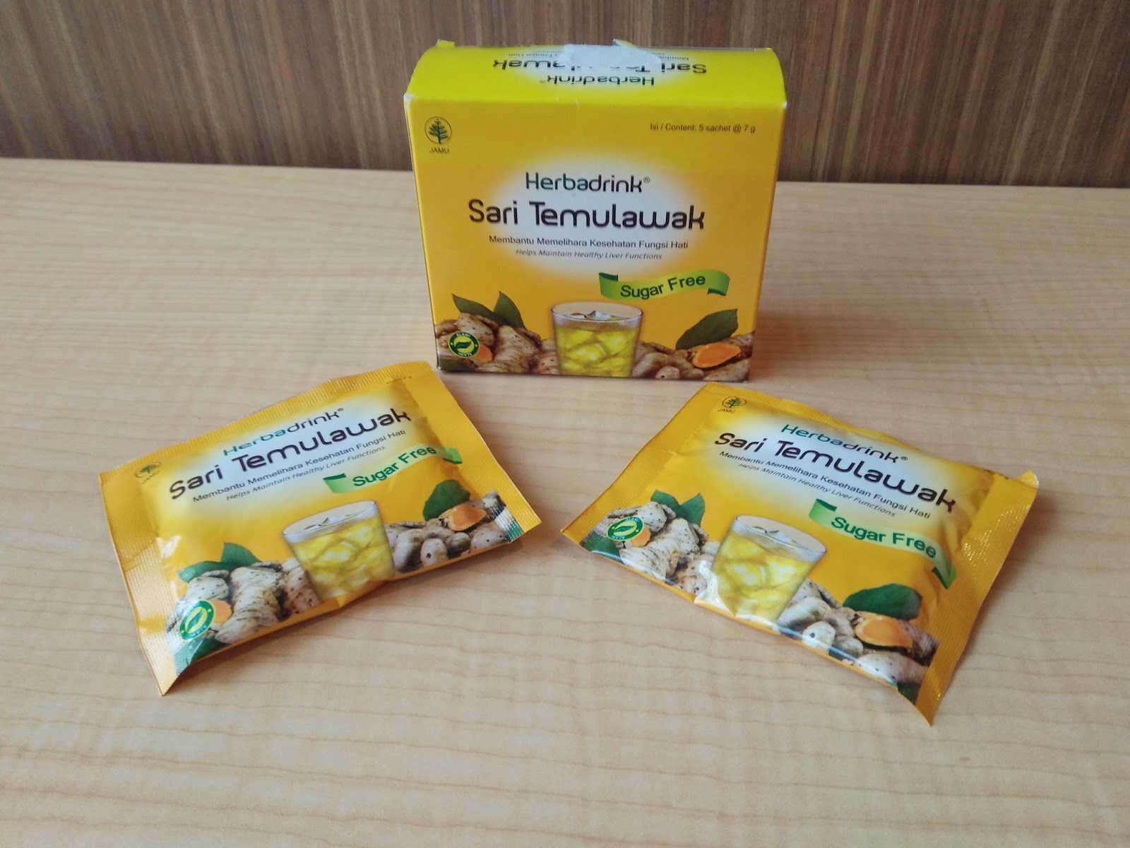 Herbadrink Sari temulawak ini adalah minuman herbal yang dibuat berdasarkan resep tradisional Indonesia dengan proses melalui teknologi modern, diolah dari bahan-bahan alami pilihan dan dibuat bebas gula, minuman ini berkhasiat untuk memelihara kesehatan fungsi hati. Bagusnya lagi si Sari temulawak ini sugar free guys, gak khawatir bikin gemuk atau diabet. Bahan utamanya adalah temulawak yang sudah tidak diragukan lagi khasiatnya untuk tubuh kita.