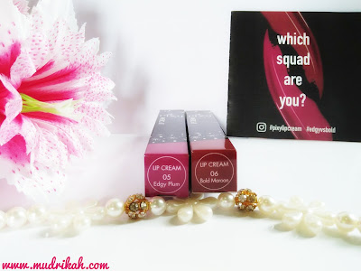 Untuk kemasan shades Edgy Plum dan Bold Maroon ini sama dengan shades sebelumnya tidak ada perbedaan sama sekali, masih dibalut kemasan warna hitam dan bagian bawahnya dibedakan berdasarkan warna shades.