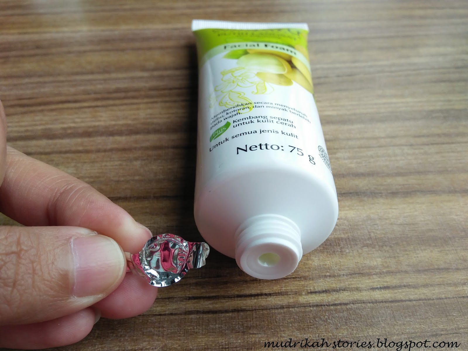 Kemasan Sariayu Facial Foam ini berbentuk Tube berat Netto yang tercantum dikemasan 75 g, tidak terlalu besar tidak terlalu kecil juga, kalo dibawa buat pergi-pergian masih muat kok ditas.