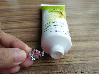 Tekstur dari Sariayu Facial Foam ini sedikit agak cair dan semi gel ada scrub lembutnya juga, si scrubnya ini meskipun keliatannya akan kasar tapi enggak ko gk terlalu berasa ada scrubny. Teksturnya yang semi gel membuat saya merasa harus menuangkan banyak produk pada saat akan diaplikasikan di wajah, tapi ternyata pas dipakai busanya lumayan banyak jadi selanjutnya saya tuang sedikit aja biar busanya gk belepotan.