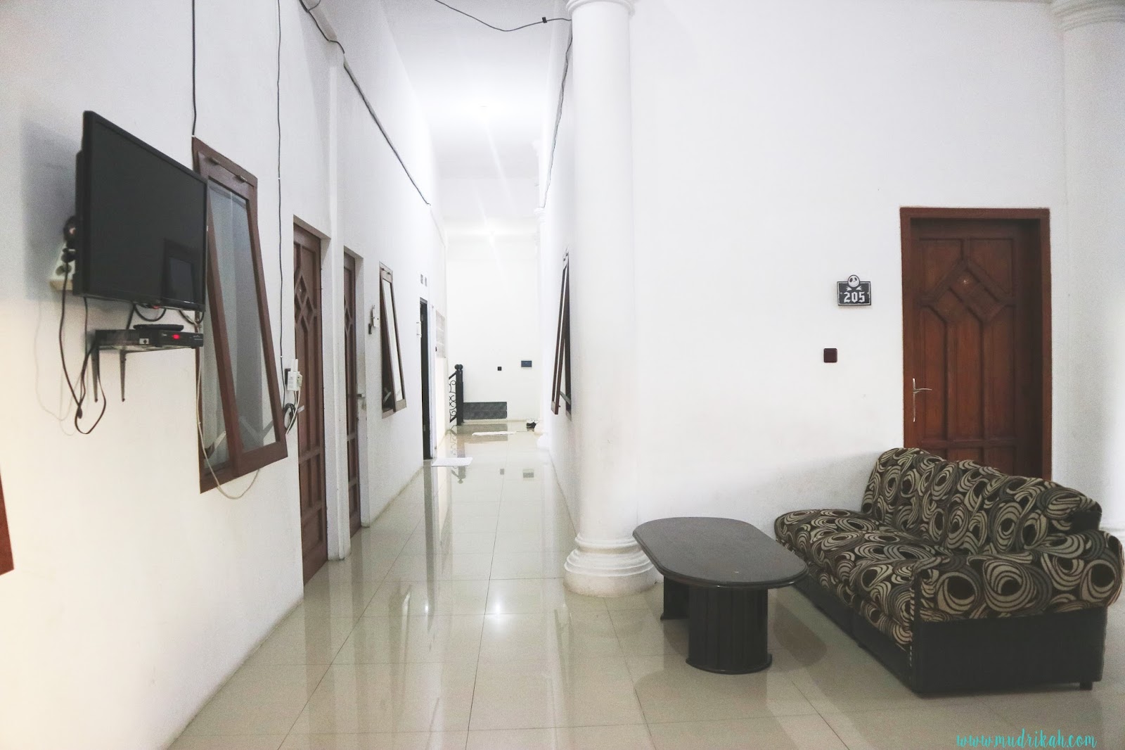 Untuk Kamar letaknya di bagian belakang ada 2 lantai, dengan kamar yang cukup banyak ( aku gak ngitung satu-satu dan lupa nanya sama mas nya ). Aku dapat kamar di  lantai 2, alhamdulillahnya dekat dengan kamar mandi jadi gak repot kalo kebelet pipis. Ditengah ruangan disediakan juga televisi dan kursi tamu buat tamu yang mau santai nonton tivi. Tapi selama aku disana jarang banget yang gunain tv, lha wong pas ke penginapan pengennya langsung bleuk tidur.