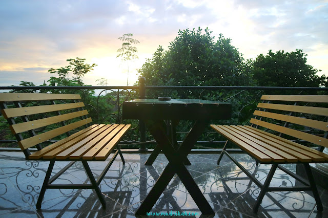 Balkon di lantai 2 ini punya pemandangan yang sangat cantik, baik itu pagi hari atau malam hari, saat pagi kita bisa melihat sunrise yang kami nikmati di hari terakhir karena sebelum-sebelumnya kami selalu berangkat sebelum matahari terbit. Dan pemandangan malamnya pun bikin kita betah, melihat lampu-lampu kota berkilauan di ujung sana.