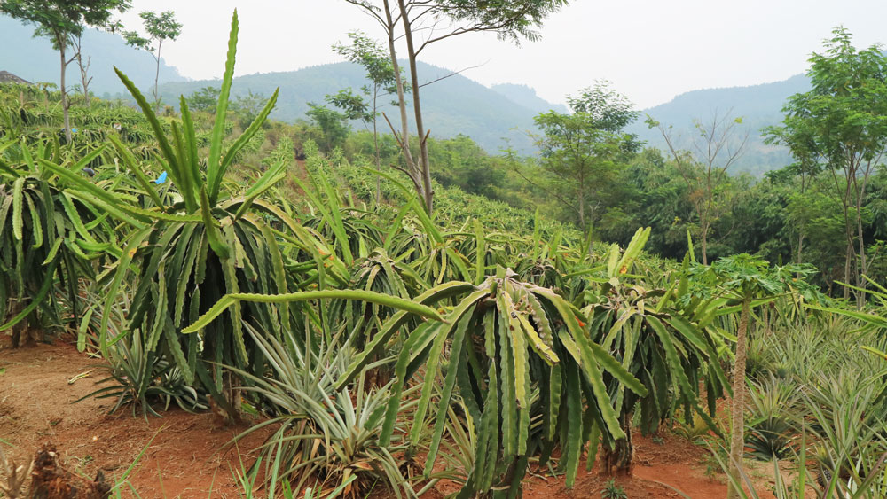Jenis buah yang ditanam adalah Nanas, Buah Naga, Jambu Kristal dan Pepaya. Sayang sekali saat kami berkunjung buah naganya sedang tidak musim, padahal kalau pas panen kan lumayan aku bisa beli langsung dari petani disini, berharap harganya lebih murah,, hhe