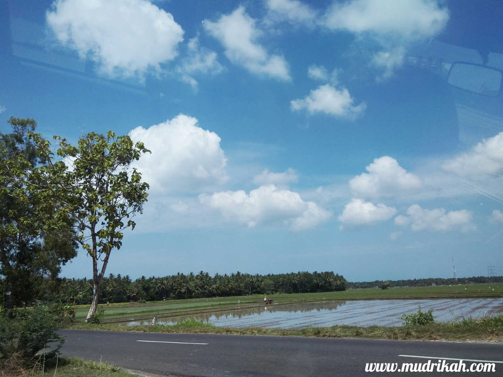 Sandra cerita sawah-sawah ini akan lebih Indah saat musim panen, warna kuning terang menyambut kami sepanjang perjalanan seakan menyambut kami dengan lenggokan sang padi yang tertiup angin, sayang saat kami lewat sudah lepas musim panen jadi sawahnya kosong belum ditanami apa-apa .