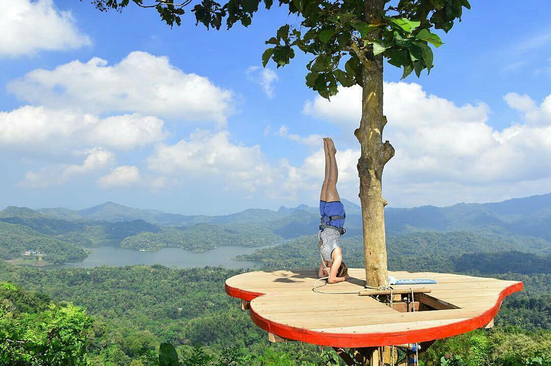 Ini si mba nya uji nyali banget sih diatas sini sambil Yoga, 3 jempol deh mba aku kasih.